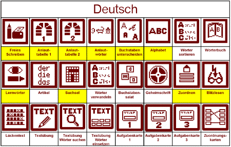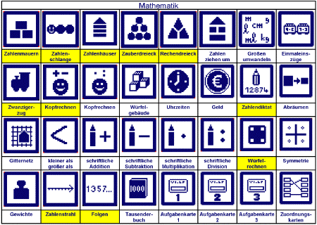 Aufgrund der angebotenen Fülle von Übungen ist es möglich, differenzierte Aufgaben für jeden Schüler anzubieten, so dass sowohl schneller lernende Kinder als auch Kinder mit Lerndefiziten in bestimmten Lernbereichen speziell für sie ausgesuchte Übungen bearbeiten. Wenn die Symbole für die einzelnen Übungen in Listen eingefügt werden, ist ein solches differenziertes Arbeiten schon im 1. Schuljahr möglich, wenn die Kinder noch nicht lesen können. So stellt die Lernwerkstatt eine weitere zusätzliche Möglichkeit dar, ganz gezielt und ohne großen Aufwand im Unterricht zu differenzieren und den Schülern motivierende Übungen anbieten. |