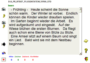 ![]() Die Abbildung zeigt den Bildschirm im Vorbereitungsbereich. Das Kind kann das ganze Diktat sehen und hören. |