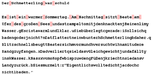 Eine von vielen neuen Textübungen ist die Übung „Buchstaben löschen“ (zu finden im Bereich „Texte“). Geübt wird hier neben rechtschriftlichen Elementen auch das sinnentnehmende Lesen, da die Kinder überflüssige Buchstaben im Text entfernen müssen, um so einen sinnvoll aufgebauten Text mit Wortlücken zu konstruieren.