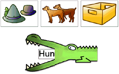 Die Übung „Lesekrokodil“ (zu finden im Bereich „Erstlesen“) ermöglicht Kindern das schrittweise Erlesen und Aufbauen von Wörtern aus dem Pilot-Wortschatz. Die Ebene der Sinnentnahme beim Leseprozess wird durch den Zwang zur Hypothesenbildung gefördert.