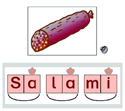 Wenn ein Kind mit einer Hot-Spot-Karte übt, sieht es das Bild und darunter den Namen eines der darauf befindlichen Hot Spots. Aufgabe ist es, aus einer Auswahl angezeigter Hot Spots den richtigen Hot Spot anzuklicken.