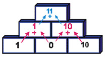 Rechne die Zahlen von zwei nebeneinander liegenden Steinen zusammen.