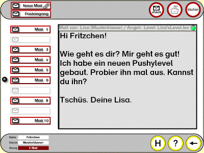 Kinder haben die Möglichkeit, eigene Pushy-Level zu erfinden und den anderen Kindern in der Klasse bzw. in der Schule auf deren Kinderkonto einzuspielen. Auch hierdurch entstehen hochkommunikative Prozesse, da sich nicht nur über das Rätsel-Lösen unterhalten werden muss, sondern über das Erzeugen einer problemhaltigen Spielsituation, die anschließend immer wieder getestet und optimiert werden kann.