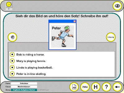 Der neue Lernbereich Englisch umfasst ebenso eine Vielzahl audiovisuell unterstützter Lernangebote, bei denen das Primat des Mündlichen im Vordergrund steht. Alle Textelemente können deshalb wahlweise ausgeblendet werden, so dass die Übungen lediglich über den auditiven Lerneingangskanal bearbeitet werden können.