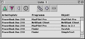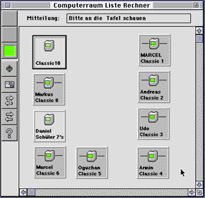Liste von Objekten: Über die Objektlisten können zentral vom Lehrerrechner aus Programme oder Dokumente auf den Arbeitsplätzen geöffnet, sowie Arbeitsplätze ausgeschaltet oder neu gestartet werden. |