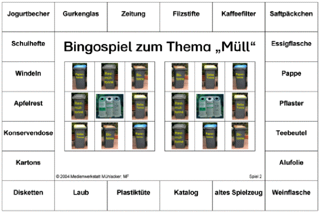Neben den Wissensseiten, Aufgabenkarten und Zuordnungskarten entstanden im Zusammenhang mit dem Projekt Müll weitere Lernspiele und Arbeitsblätter, die hier kurz vorgestellt werden sollen. Diese können vom Gratiskatalog der Medienbank GRUNDSCHULMATERIAL.DE kostenlos geladen und im Unterricht genutzt werden. Die Lizenzbestimmungen und das Urheberrecht müssen gewahrt bleiben. |