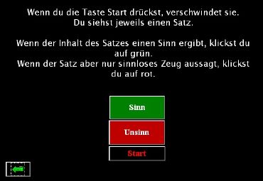 1800 der häufigsten deutschen Wörter mit einem Blick (200 ms) und die kürzeren davon auch in Zweiergruppen lesen und verstehen. Zielgruppen B und C sollten mit einem Blick auch Dreier- oder Vierergruppen von Wörtern lesen können. |