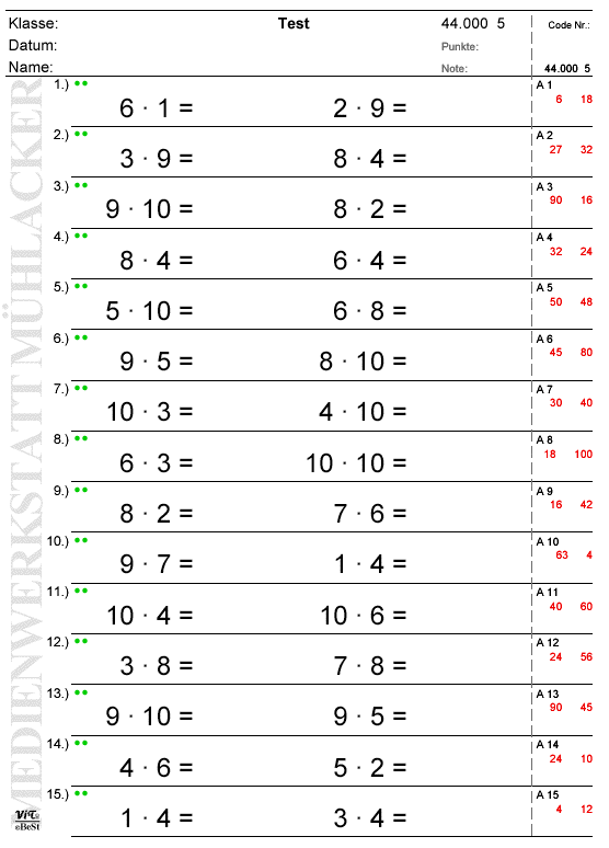 Tests zur Leistungskontrolle mit abtrennbarem Lösungsstreifen |
