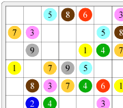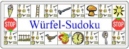 ![]() Gelingt dies, erhält er einen Punkt. Wer eine sechs würfelt darf frei setzen und nochmals würfeln. Wer auf ein Jokerfeld kommt erhält 2 Zusatzpunkte. Durch das Würfeln entsteht Spannung und es muss nicht immer nur der beste Sudokuspieler gewinnen. Das Glück spielt mit. |