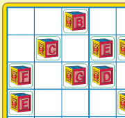 Buchstaben, Erdkundesymbole, geometrische Formen, Anlautbilder, usw. bringen Abwechslung in das Lösen von Sudokus: